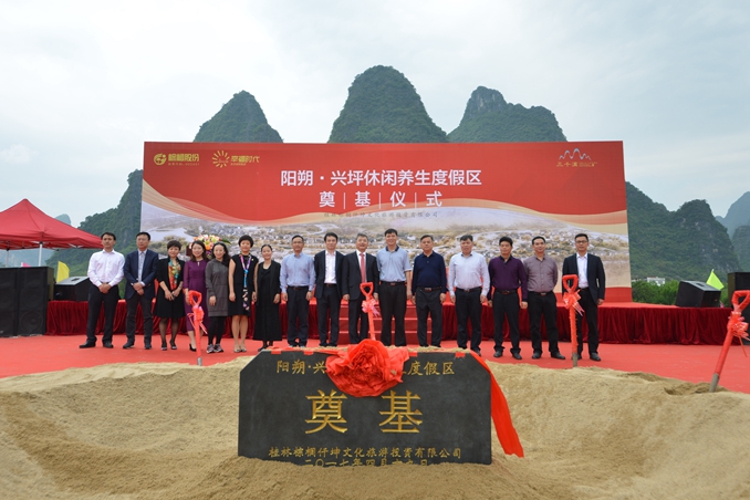 2017年(nián)4月(yuè)19日(rì),由桂林(lín)棕榈仟坤文(w ☆γén)化(huà)旅遊投資有(yǒu)限公司"σ≤開(kāi)發建設的(de)“陽朔·興坪休閑養生(shēng)度假區(qū)<∑©”項目順利舉行(xíng)開(kāi)工(gōng)奠基儀式,标志(zhì)著(zhe¶§©¶)該項目正式進入施工(gōng)建設階段。縣政協主席陳慶武、縣常務副縣長(cháng€& ≥)李首群、縣常委縣委辦公室主任何宗倫、縣人(rén)大(dà)副主任梁文(w☆€λén)幹等陽朔縣四家(jiā)班子(zǐ)領導λ↑ ,棕榈投資公司董事(shì)長(cháng)張輝,幸福時(shí)代副總裁顧毓敏以及項目φ≤公司董事(shì)長(cháng)丁秋蓮、董事(shì)趙嘉興等公司代表出席本次奠基儀式。