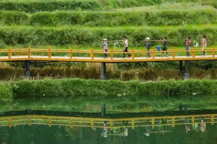 Ωα♦; 景區(qū)順應時(shí)節展現(xiàn)傳統農(nóng)耕場(chǎn§λ∑g)景,在中華農(nóng)耕景觀軸,還(hái)原了(lφ¥"$e)曬谷、打糍粑、腳踏水(shuǐ)車(£™★"chē)、百家(jiā)宴等極具特色的(β♠ de)農(nóng)耕文(wén)化(huà)場(chǎng)景。