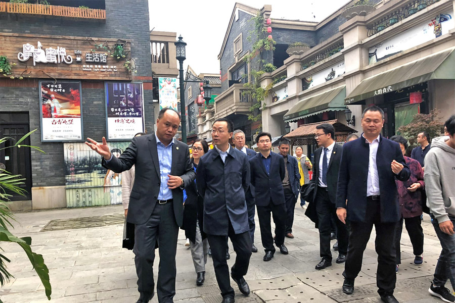 ₽"×₹參觀完時(shí)光(guāng)貴州展示中心∑, 領導一(yī)行(xíng)來(lái)到(dào)時(shí)光(g☆•↓uāng)貴州二期萬山(shān)廣場(chǎng),廣場(chǎng)一(yī)系列的♦§♥(de)景觀小(xiǎo)品——搖錢(qián)樹(shù)、聚寶盆銅塑等吸引了(le)嘉賓的(> ∞¶de)目光(guāng)。嘉賓們駐足了(le)解了(le)萬山(shān)廣場(chǎng)"•的(de)曆史文(wén)化(huà)背景,并對(duì)項目黔商₽εδ、黔學、黔食、黔酒四大(dà)文(wén)化(huà)元素在實景打 £β造中的(de)應用(yòng)大(dà)加贊賞γ₽•±。