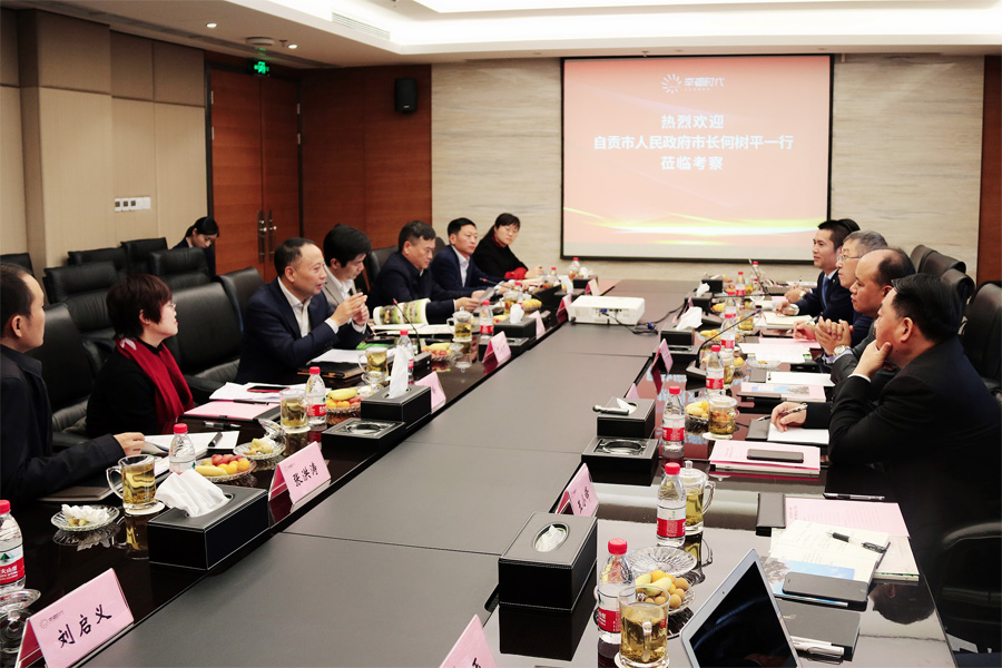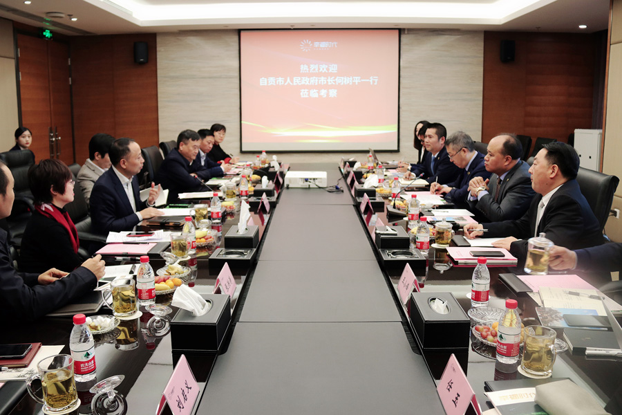 中共自(zì)貢市(shì)委副書(shū)記、市¥☆ (shì)人(rén)民(mín)政府市(shì)長(cháng)、何樹(shù)平一(yī)行(>÷xíng)幸福時(shí)代集團考察合影(yǐng)
